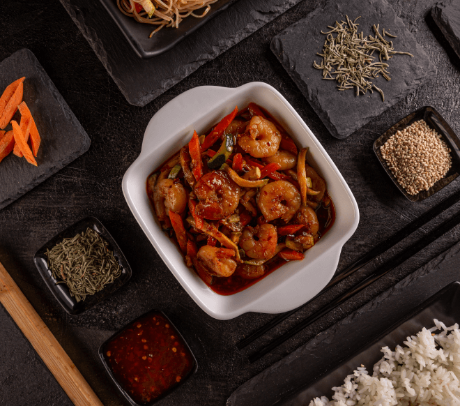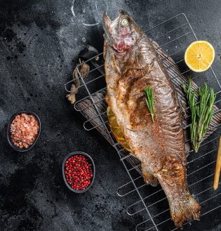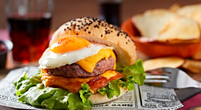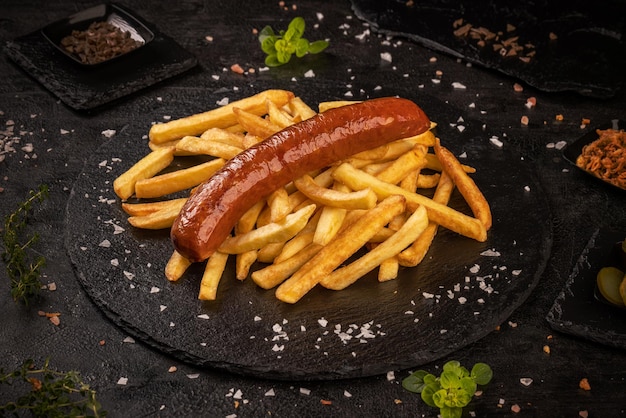 Picanha com batatas fritas, arroz, feijão preto e fruta